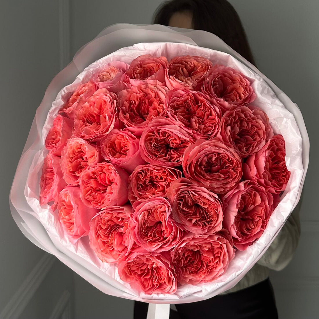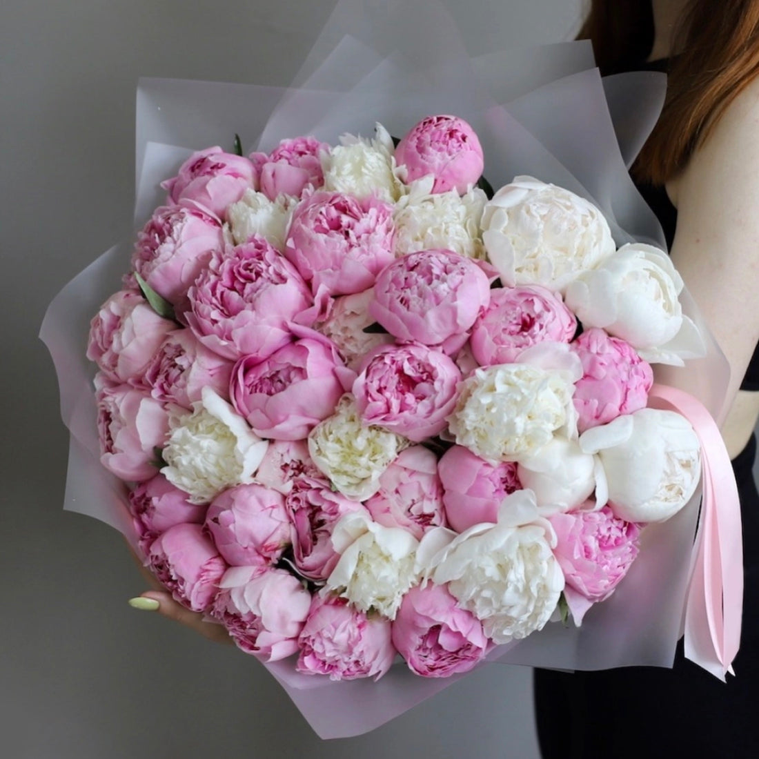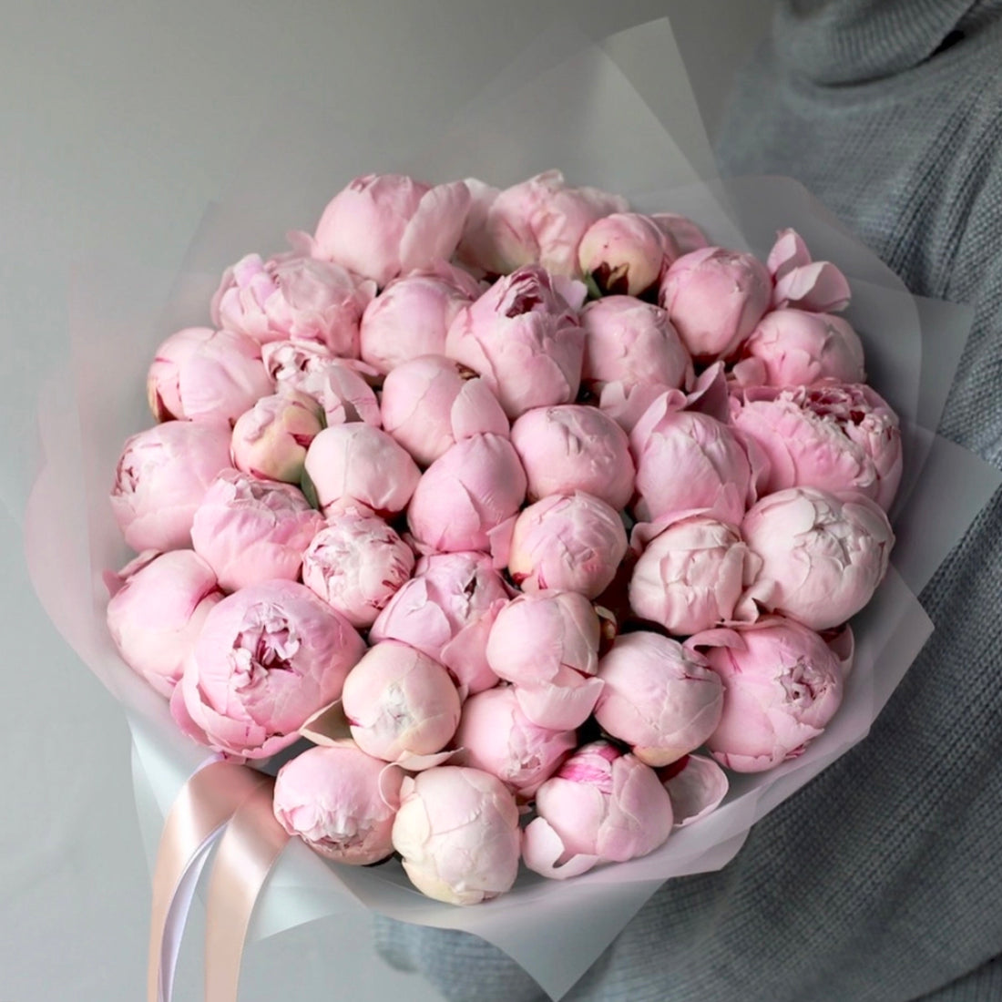 A bouquet of 20, 35 or 55 stems of premium pink Peonies, depending on size...