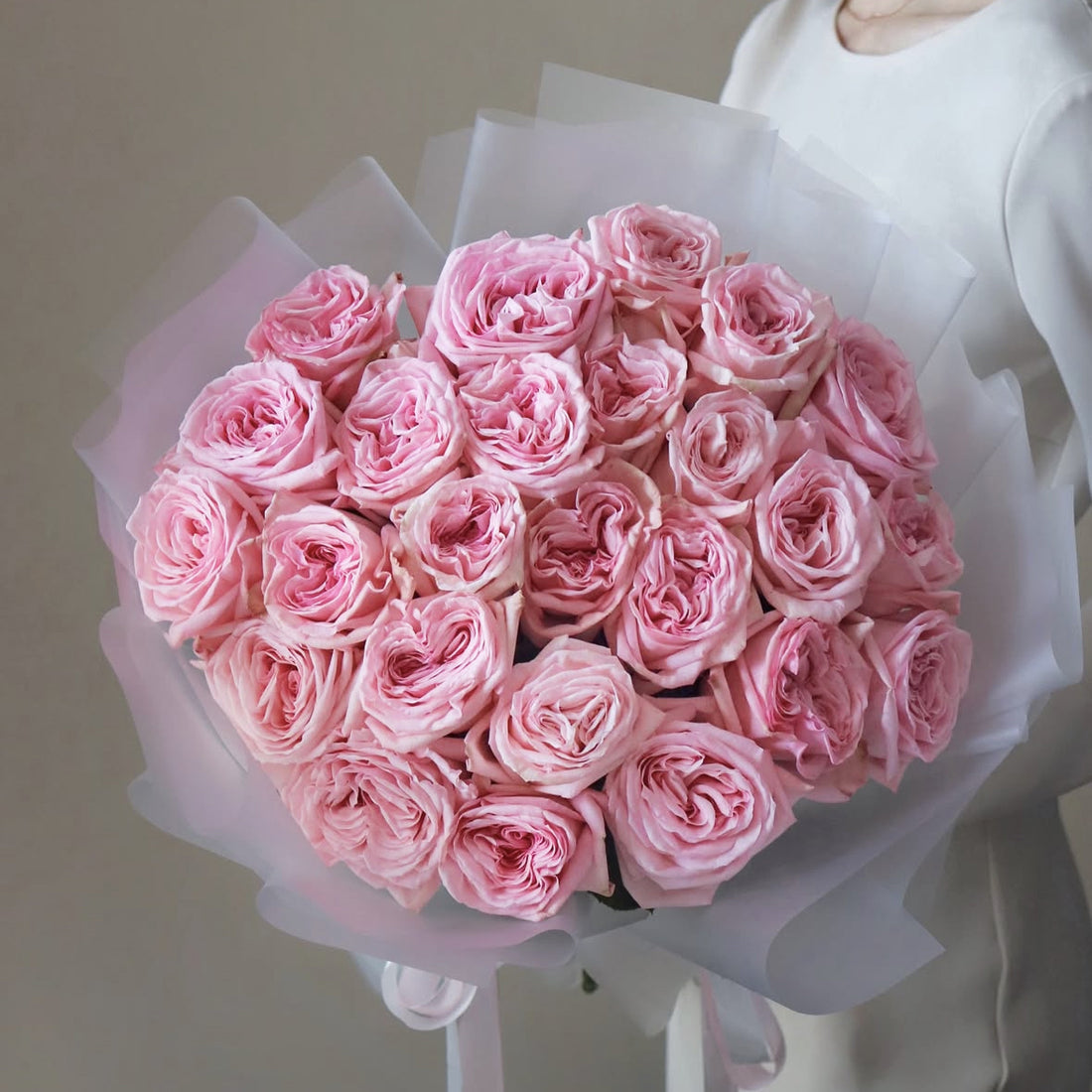 A bouquet of 24 or 48 pink garden roses, depending on size selected. Rêve Rosé...