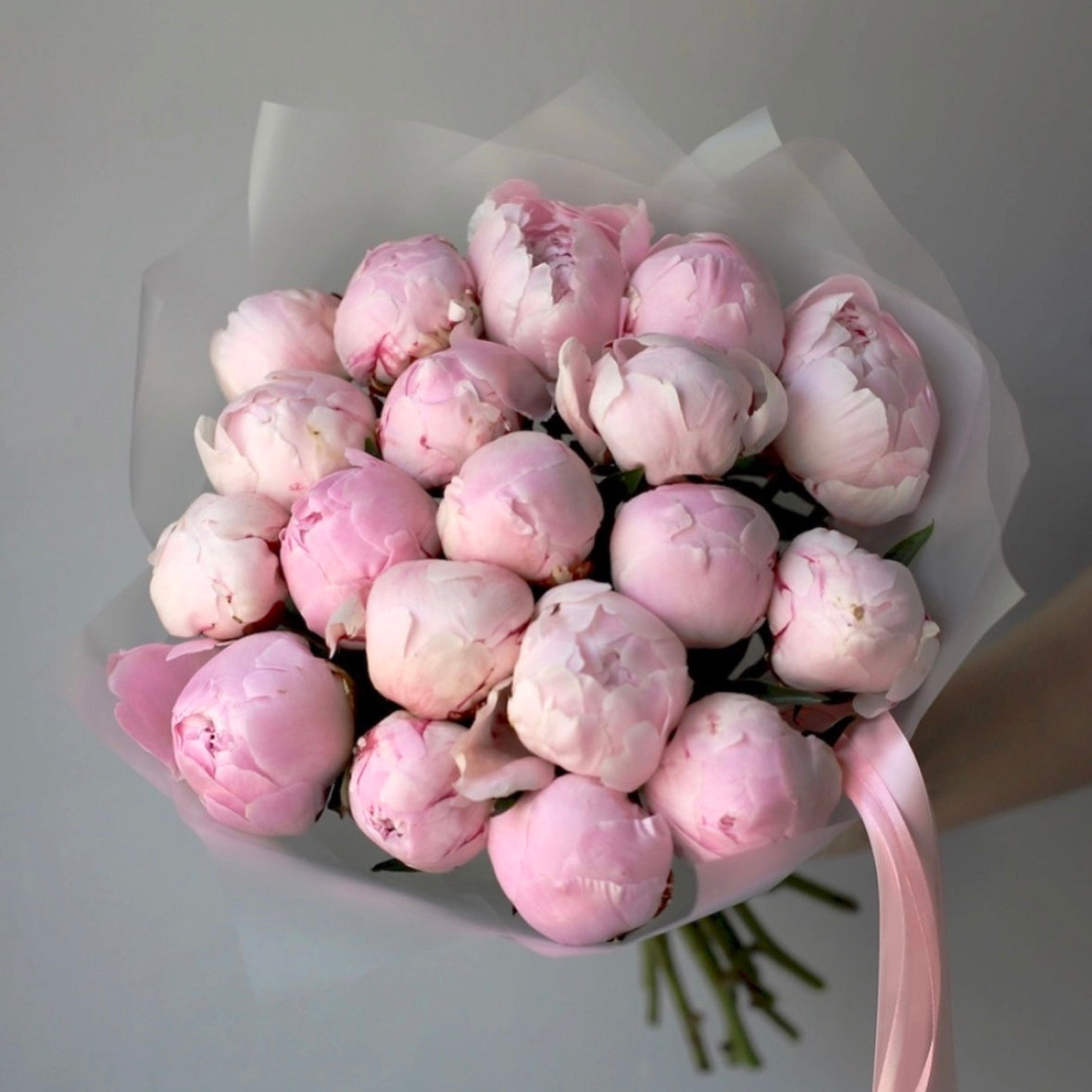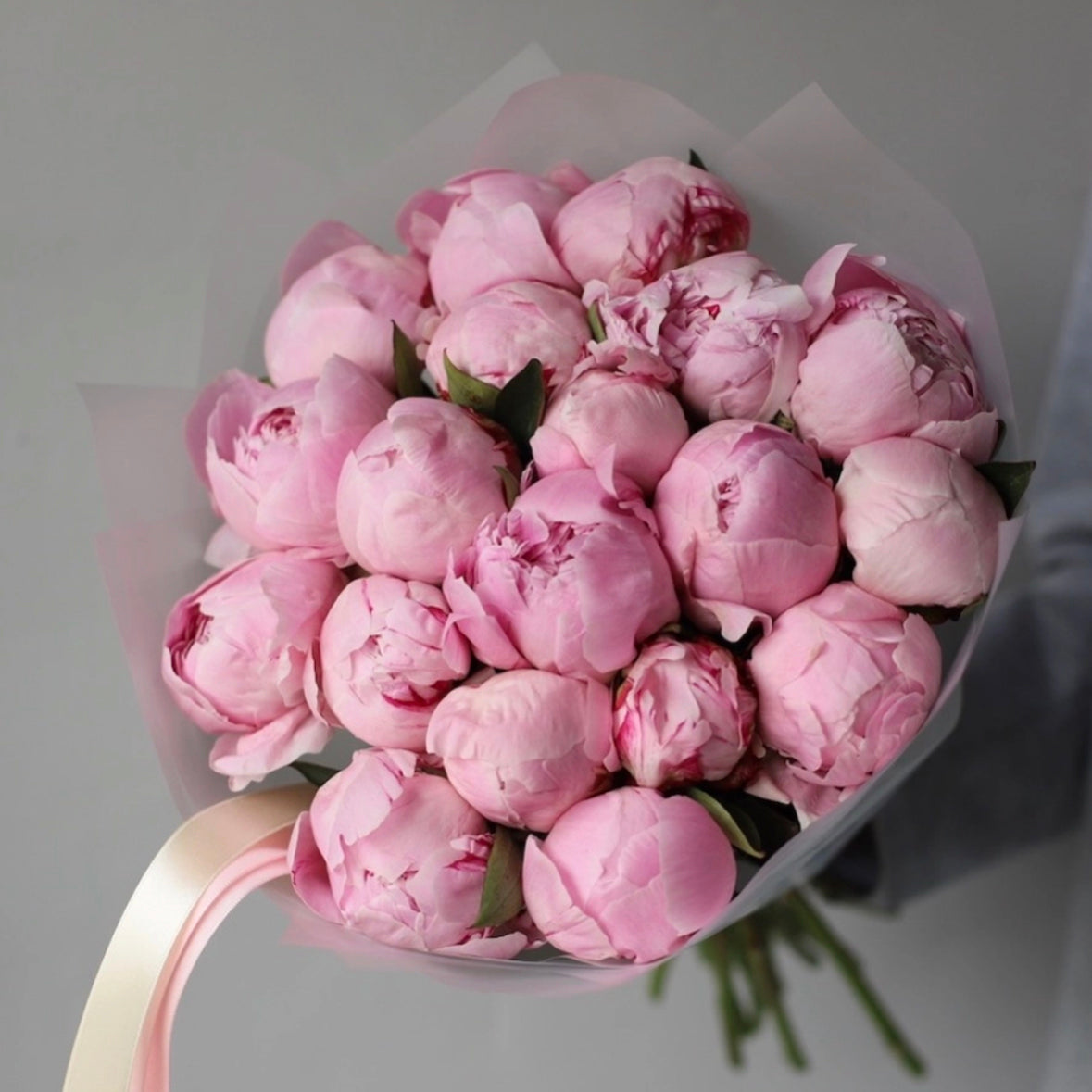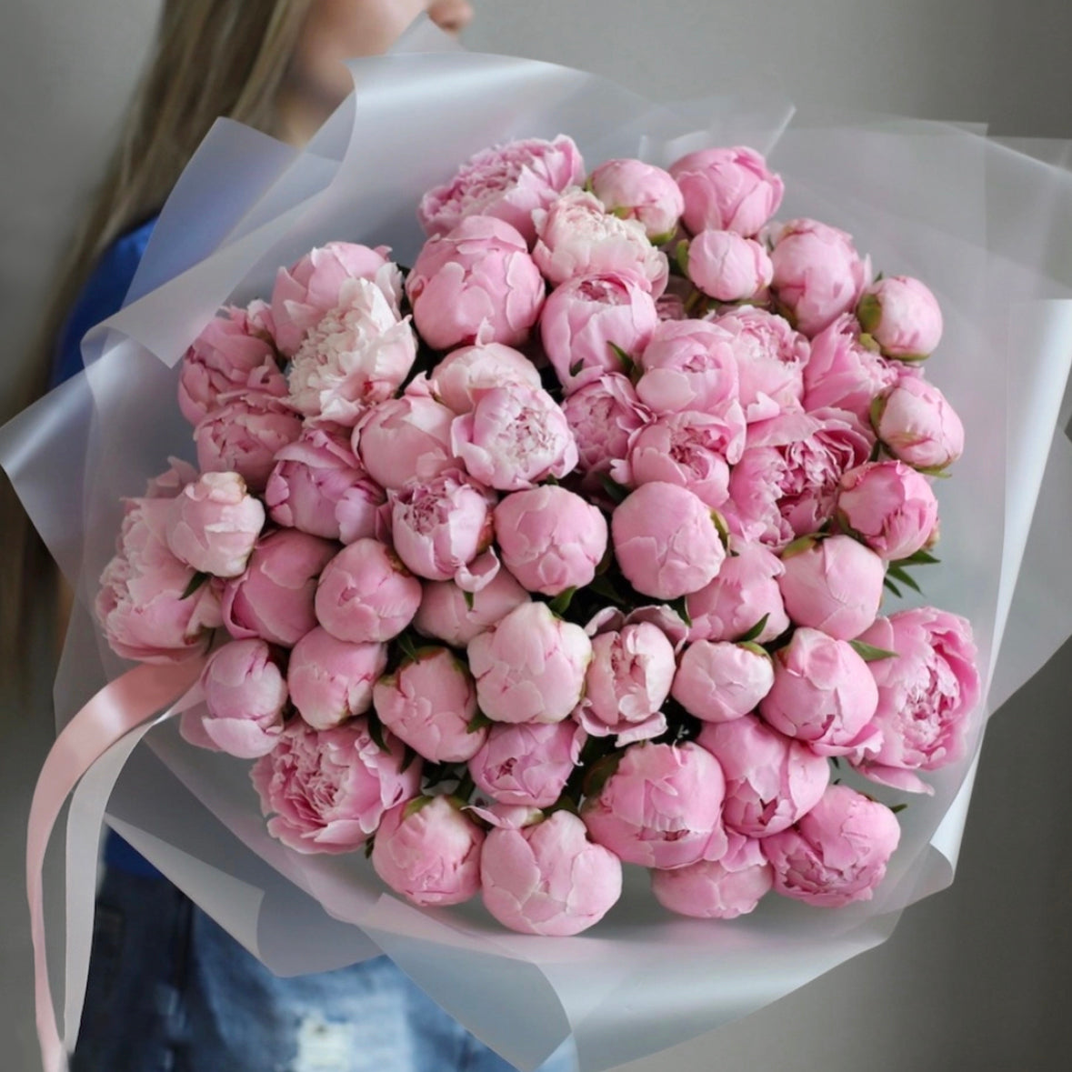 A bouquet of 20, 35 or 55 stems of premium pink Peonies, depending on size selected.
