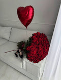 Red Heart Foil Balloon (Large) features an oversized glossy heart-shaped foil balloon that creates a bold romantic statement. Perfect as a standalone gift or as a striking add-on to flower deliveries for proposals, anniversaries, Valentine’s Day, or special surprises.