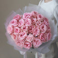 A bouquet of 24 or 48 pink garden roses, depending on size selected.