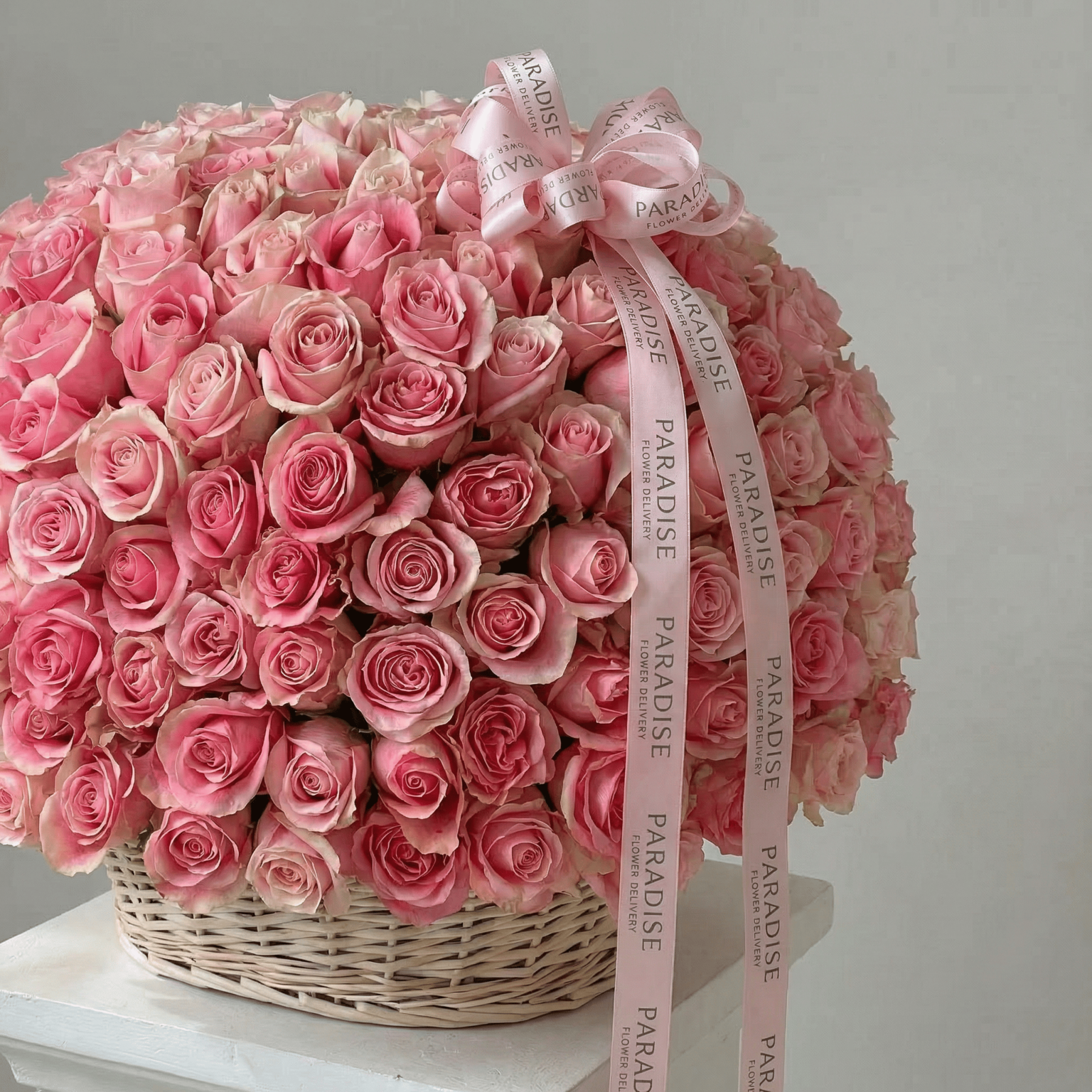 This lavish design overflows with dozens of premium pink roses arranged in breathtaking abundance. Soft and sincere, it conveys deep emotion and fills any room with pure affection.