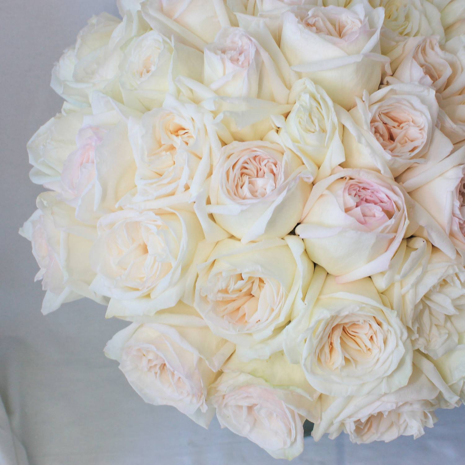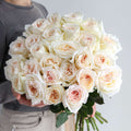 A bouquet of 24 White O’Hara garden roses, depending on size selected.